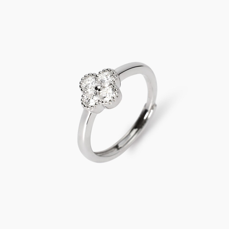 anello regolabile in argento con fiore in zirconi.