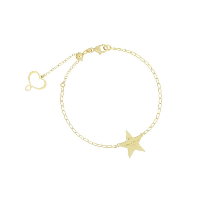 bracciale di catena realizzato in argento 925 con galvanica oro giallo ad alto spessore e ad alta resistenza. presenta una stella con inciso logo maman et sophie