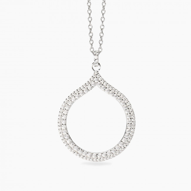 girocollo in argento con catena rolò con pendente goccia in zirconi bianchi.