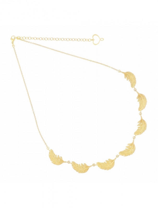 girocollo in argento 925 con galvanica oro giallo ad alto spessore e ad alta resistenza. il girocollo presenta sette piume di lunghezza 20mm.