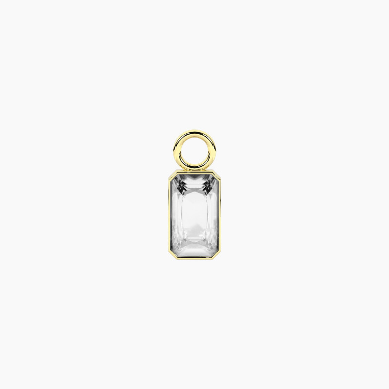 ciondolo per orecchini in acciaio dorato e zircone bianco taglio ottagonale.