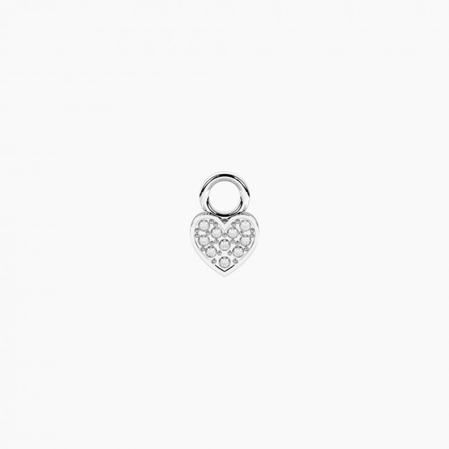 ciondolo per orecchini a forma di cuore in acciaio e cristalli.