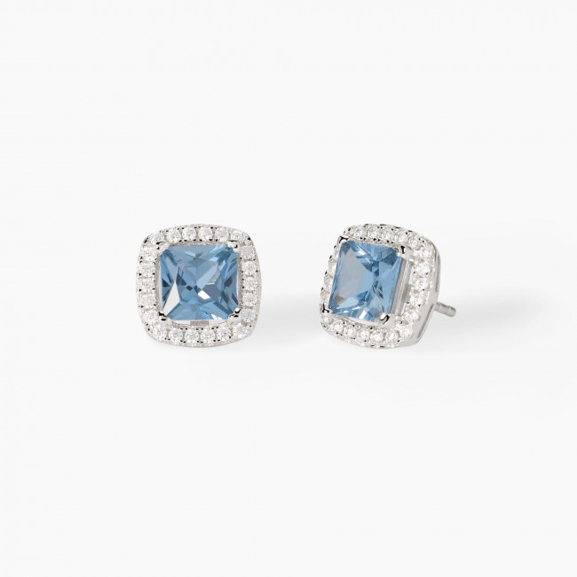 orecchini a lobo in argento zirconi bianchi e acquamarina sintetica taglio princess.
