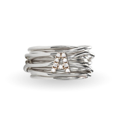 anello filodellavita classic collection, 13 fili in argento 925 e iniziale in oro 18kt e diamanti bianchi