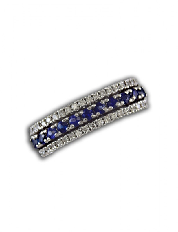 anello fantasia con 11 zaffiri carati 0,39 e 38 diamanti ct. 0,20