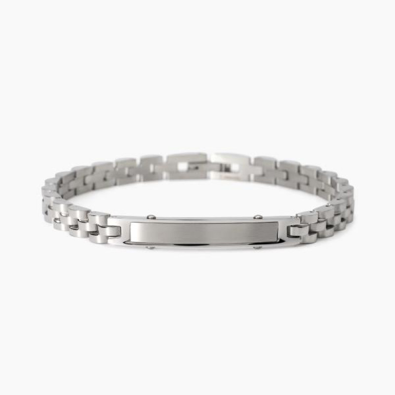 bracciale in acciaio 304 lucido e satinato con maglia panther 6 mm e piastra centrale 40x6 mm, lunghezza 20 cm