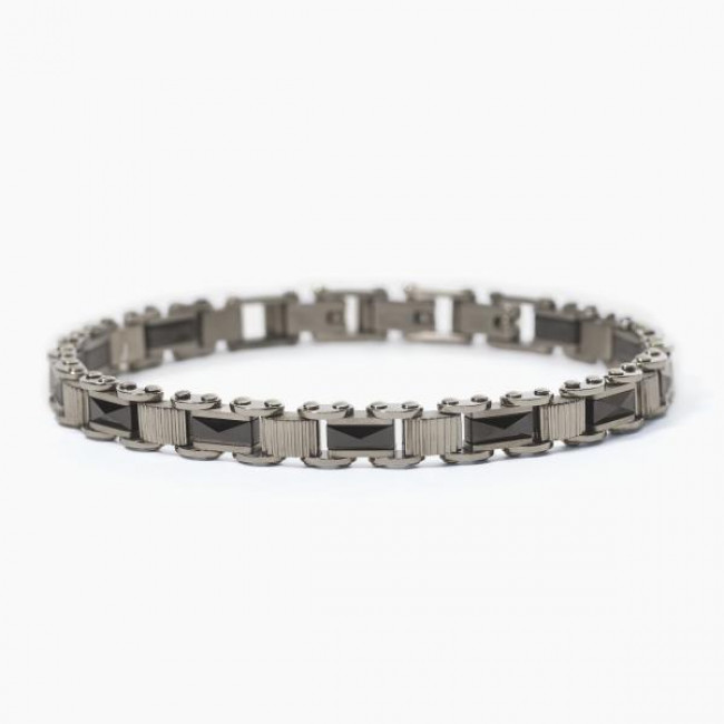 bracciale in acciaio 316l con elementi in ceramica nera 8x3 mm, lunghezza regolabile da 19 a 21 cm