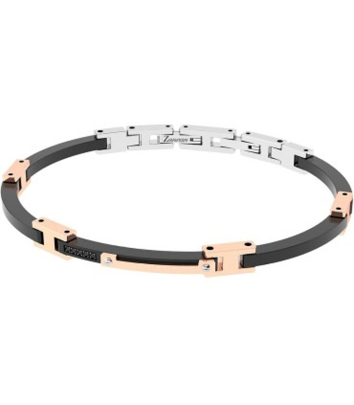 bracciale della collezione zancan hiteck da uomo.il gioiello è in acciaio inossidabile 316L silicone, pvd oro rosa e nero e spinelli neri.