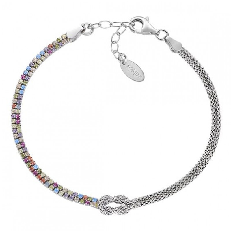 bracciale donna amen  lunghezza 16+3cm; gioiello con nodo d'amore in argento 925 e zirconi multicolor