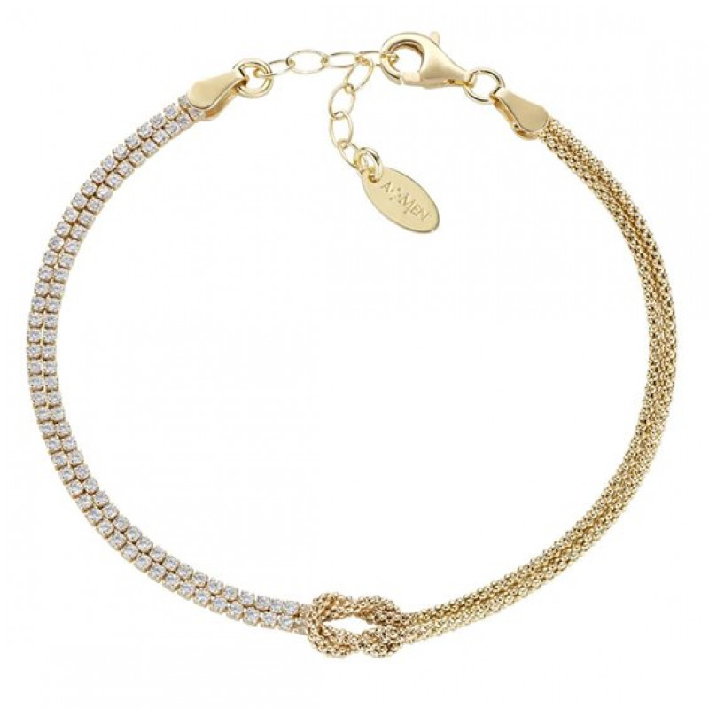 bracciale donna amen  lunghezza 16+3cm; gioiello con nodo d'amore in argento 925 dorato e zirconi bianchi
