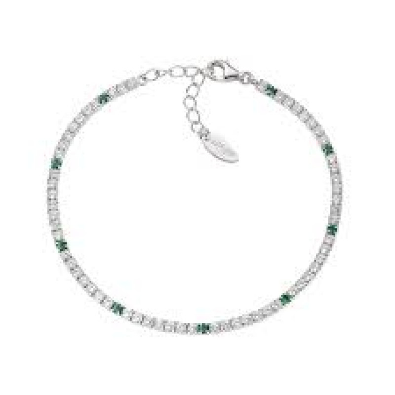 bracciale donna amen tennis mania, gioiello realizzato in argento 925, lunghezza regolabile 17-20,5 cm, pietre bianche e verdi