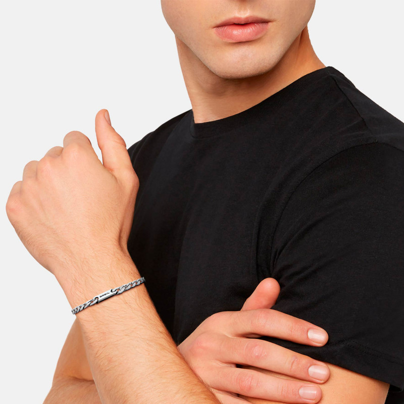 bracciale maschile in acciaio lucido. per un look che non conosce il passare del tempo. lunghezza regolabile da 21 a 22cm