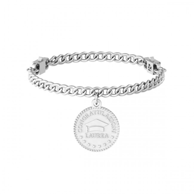 bracciale groumette  in acciaio con ciondolo moneta lucido lunghezza cm 19