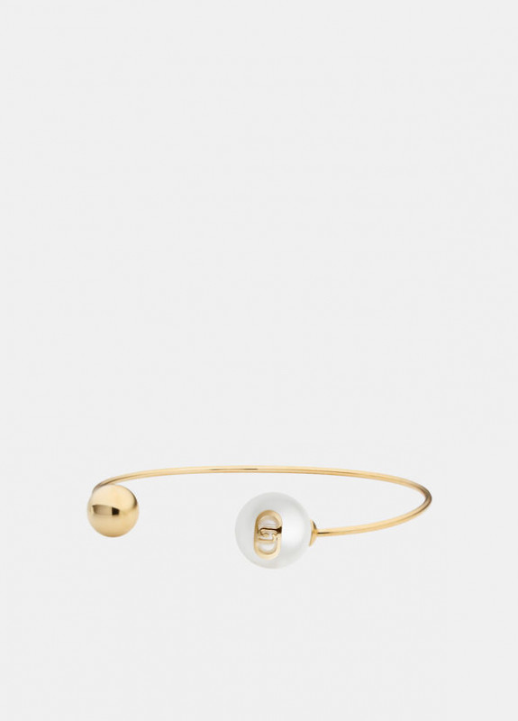 bracciale in acciaio gold rigido con perla e sfera, senza chiusura, diametro giropolso 6,5cm