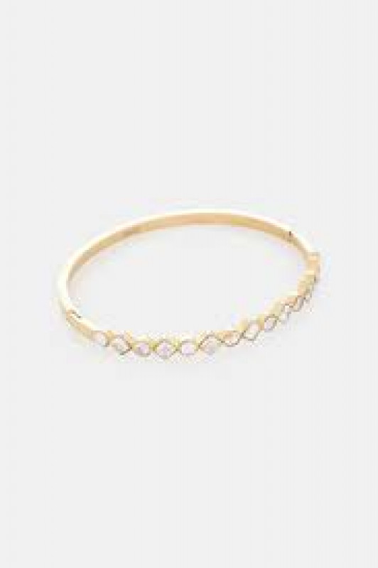 bracciale rigido da donna della marca liu jo, il gioiello è realizzato in acciaio gold con cristalli, il diametro è di 6,5cm