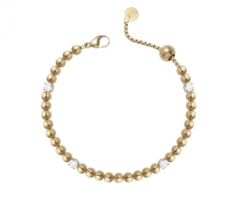 bracciale in acciaio gold con zirconi, chiusura a moschettone, lunghezza 17cm