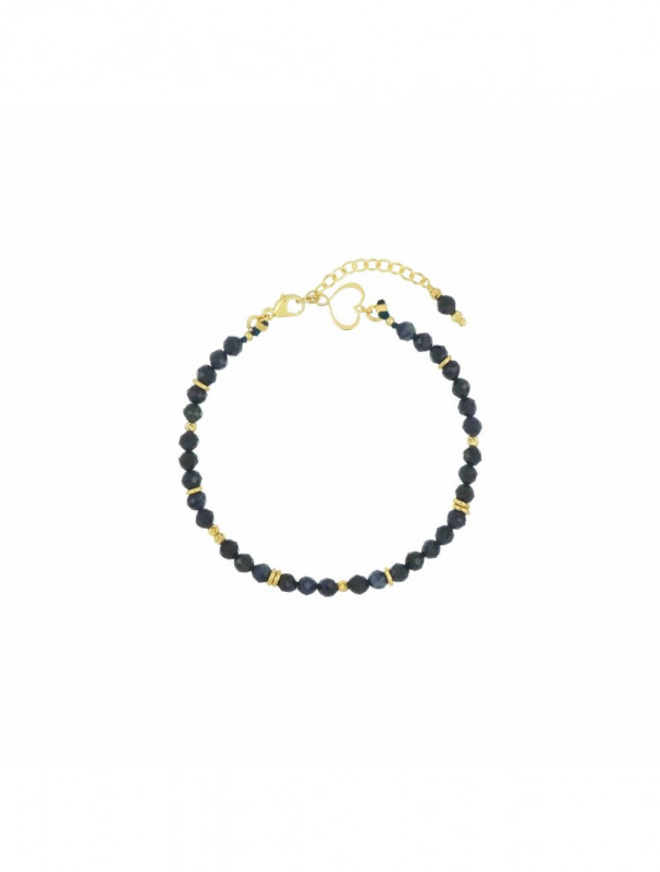 bracciale in argento 925 con galvanica oro giallo ad alto spessore e ad alta resistenza. il bracciale è ricoperto per tutta la sua superficie da pietre di zaffiro sfaccettato alternate ad elementi decorativi in argento.