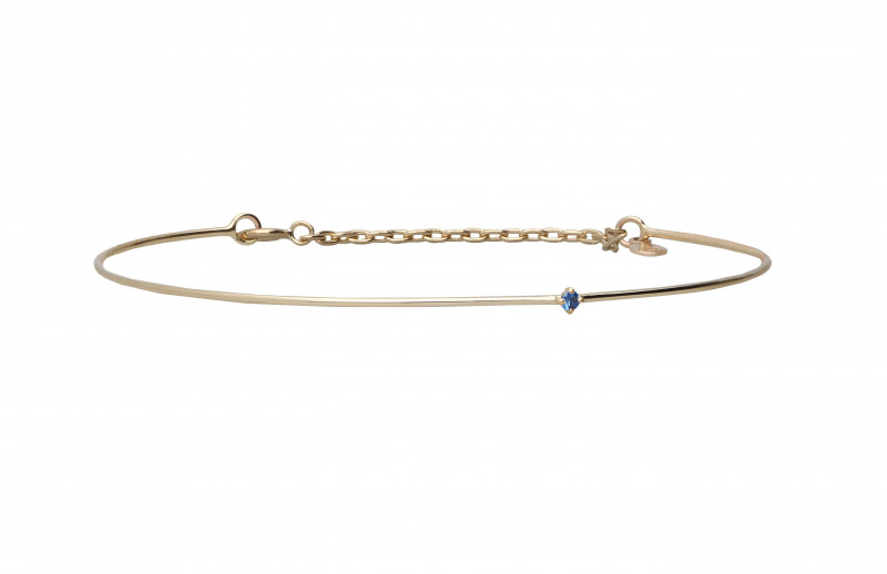 bracciale filodamore medium (12,5 cm) con filo spesso 0,9 mm in oro giallo 9kt 100% etico e certificato c.o.c. + uno zaffiro 0,022 ct un gioiello pensato per rendere ancora più dolci i momenti degni di essere ricordati nel tempo.