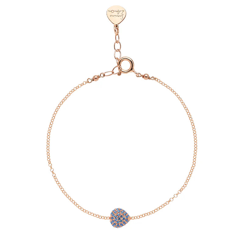bracciale semino d’amore sparkling pavé è realizzato a mano in argento 925 placcato oro rosè, con pavè di zirconi ocean blu lunghezza 16 cm + allungabile