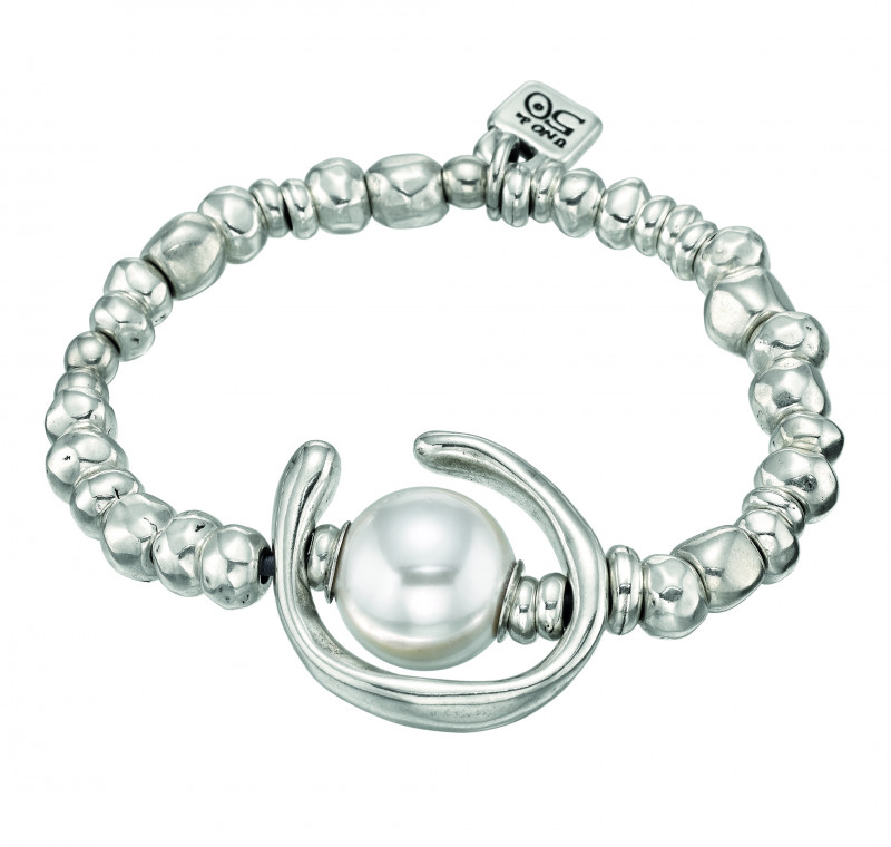 Bracciale da donna in ghisa con bagno d’argento e perla. Caratteristico di UNOde50, eseguito 100% artigianalmente, made in Spain.