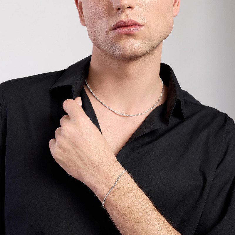 Bracciale tennis da uomo in argento rodiato con zirconi bianchi.