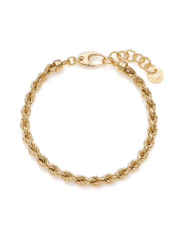 bracciale donna in argento dorato con catena corda. chiusura a moschettone, misura 22,00 cm. unoaerre rivisita in chiave contemporanea la catena corda, uno dei modelli che ha fatto la storia dell'azienda. tradizione orafa, cura al dettaglio ed innovazione di materiali e design s'incontrano e si uniscono in questo bracciale per un mix unico ed elegante.