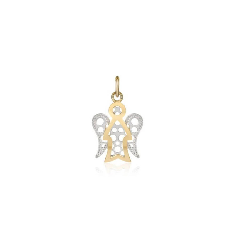 gioiello da donna roberto giannotti ciondolo angelo valorizzato con ali in oro bianco 375 (9kt) a finitura diamantata, dimensione angelo: base 1,3 cm - altezza: 1,8 cm