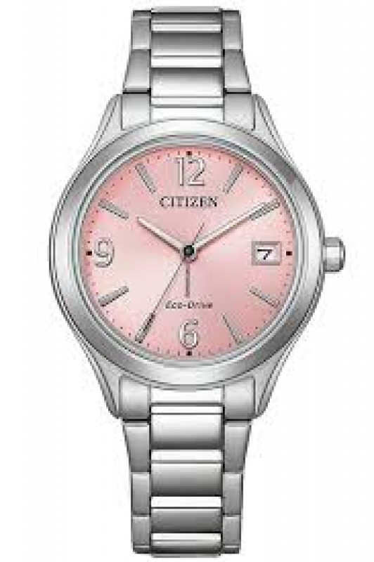 orologio donna, quadrante rosa, cassa in acciaio con fondo a pressione, bracciale in acciaio con chiusura deployante, movimento eco-drive, vetro minerale, resistente all'acqua 5 bar. cassa 33,5 riserva di carica di 8 mesi.