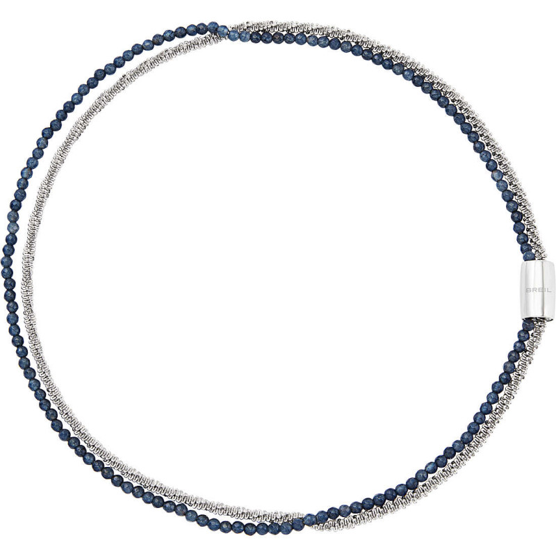 collana da donna della marca breil. multigiro composto da una catena margherita in acciao e un filo di pietre agata color blue oltremare. la la chiusura è con con magnete. le misure sono: lunghezza totale: 45 cm