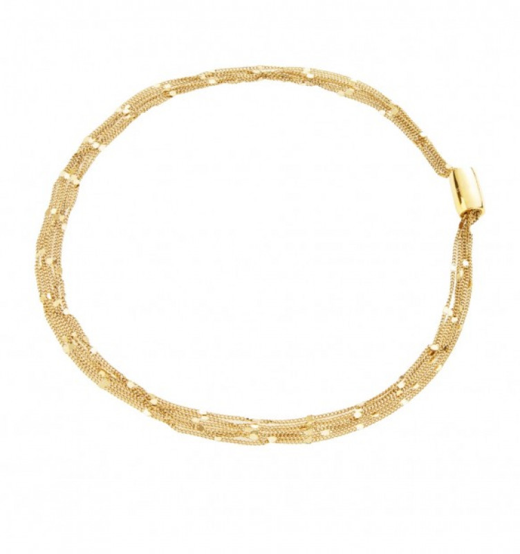 collana da donna realizzata con sei catene in acciaio anallergico 316l dorato con inserti lucidi.