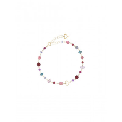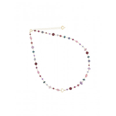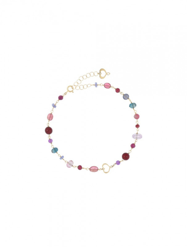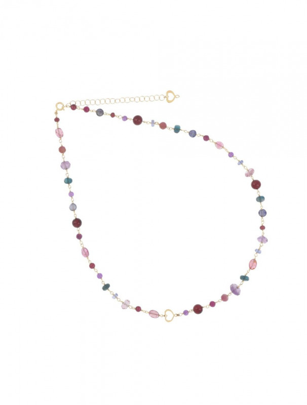 bracciale e girocollo in oro giallo 18 carati con pietre di granato, cordierite, tormalina multicolor e rosa, topazio london blu e rosa, tanzanite, rubino e ametista alternate a catena e cuore maman traforato.