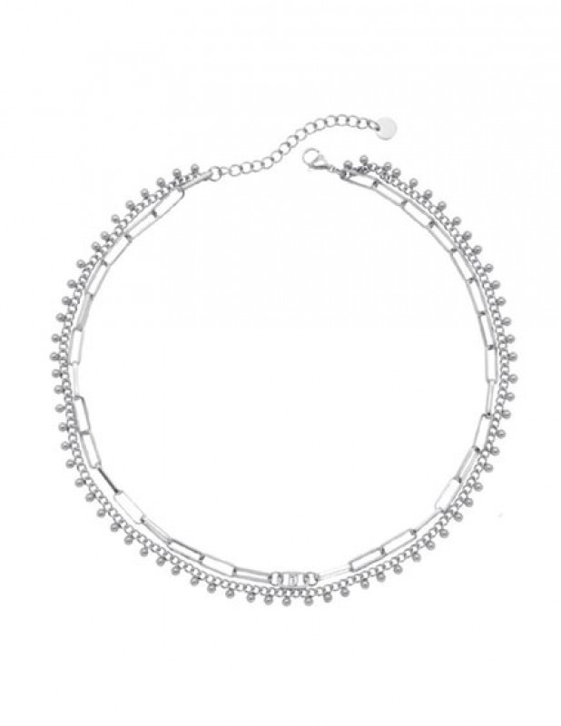 collana da donna della marca liu jo, il gioiello è realizzato in acciaio multifilo, con catena di varie dimensioni. la lunghezza è di 45cm. la chiusura con moschettone.