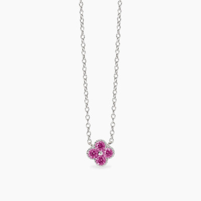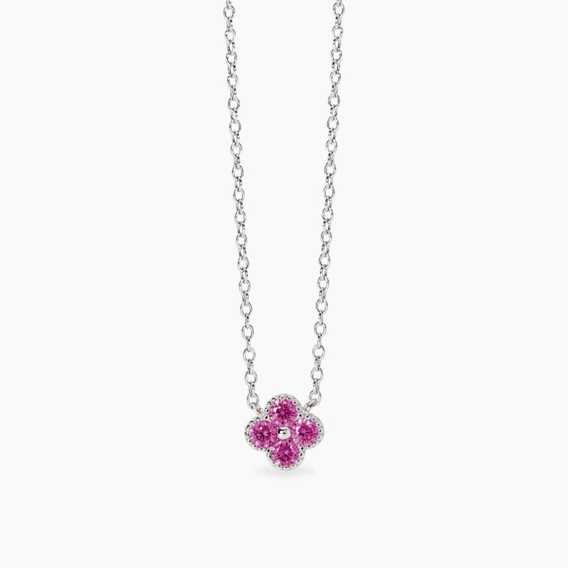 girocollo in argento catena rolò e ciondolo fiore in tormaline rosa sintetiche.