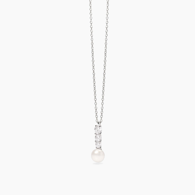 girocollo in argento rodiato con catena rolò e pendente in zirconi con perla coltivata.