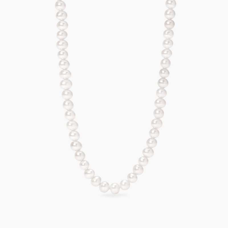 girocollo in argento rodiato con perle potato coltivate.