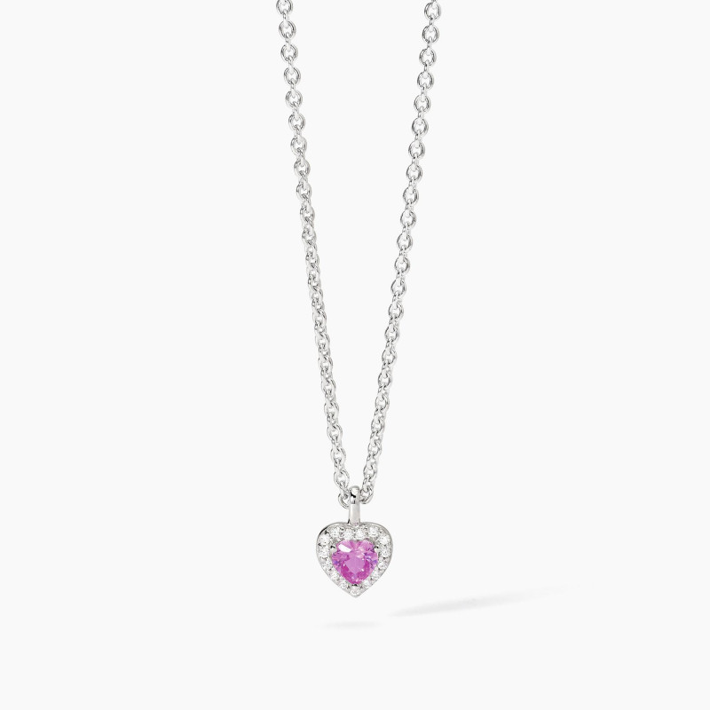 Girocollo regolabile da donna in argento rodiato con catena forzatina, ciondolo a forma di cuore con tormalina sintetica e zirconi bianchi.