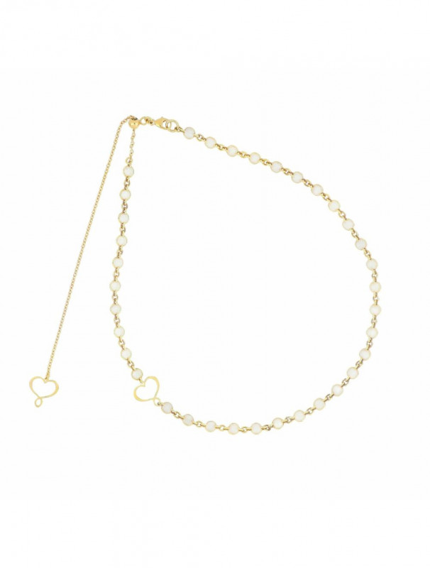 presenta catena a maglie con smalto bianco perlato e cuore maman traforato.
