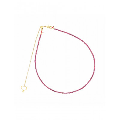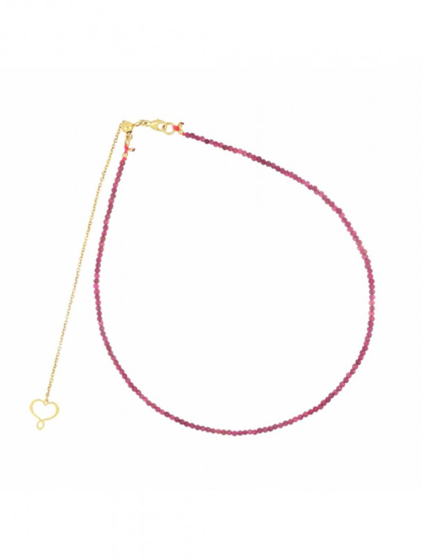 girocollo realizzato con un filo di pietre di rubino sfaccettato di 2 mm e catena di argento 925 placcato in oro giallo ad alto spessore ed alta resistenza.