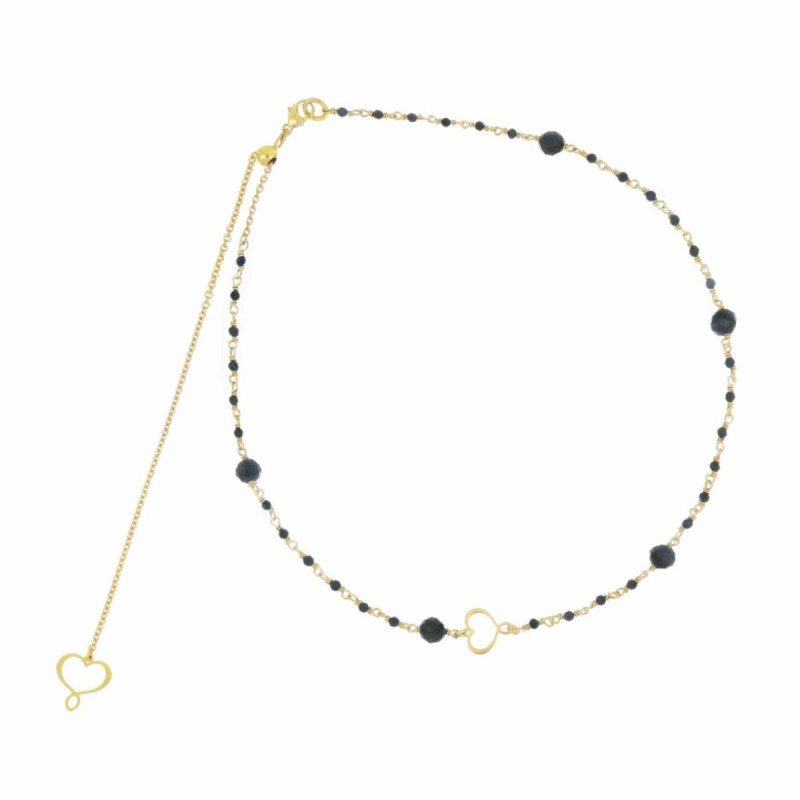rosario con pietre di spinello nero sfaccettato di 2 mm, sfere di spinello nero sfaccettato di 5 mm e cuore maman.