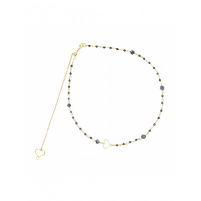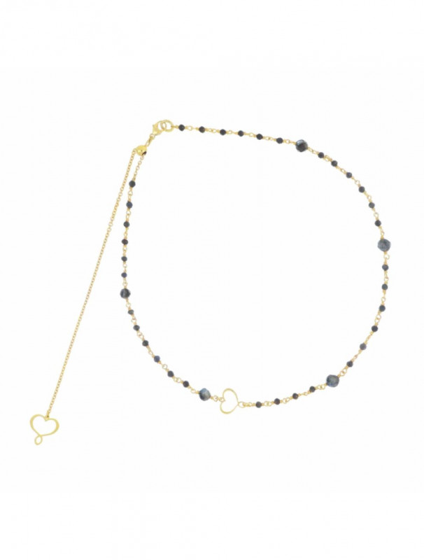 rosario con pietre di zaffiro sfaccettato di 2 mm, sfere di acquamarina sfaccettata di 4 mm e cuore maman.
