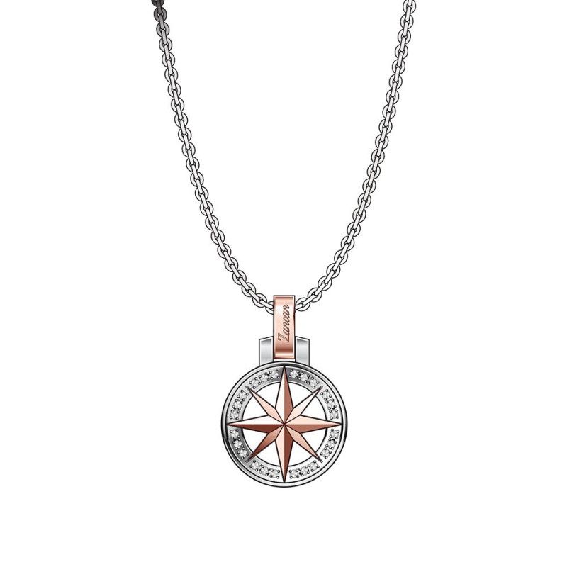 girocollo in acciaio con pendente rosa dei venti rose' e zirconi