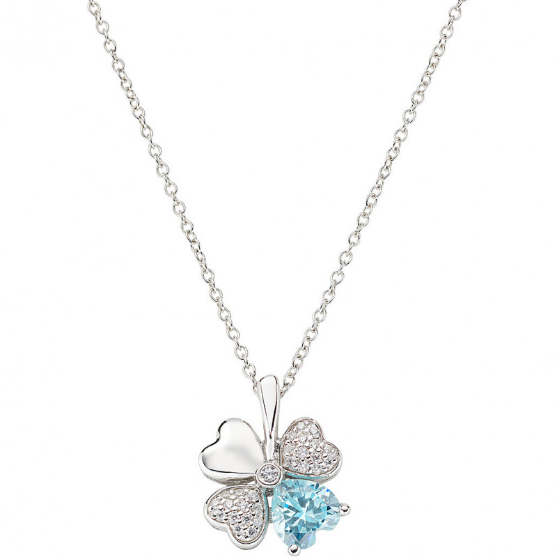 collana da donna di amen della collezione quadricuore. gioiello in argento 925 con placcatura in rodio e zirconi bianchi e acqua marina