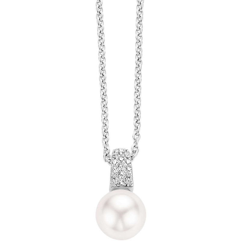girocollo in argento con pendente perla e zirconi