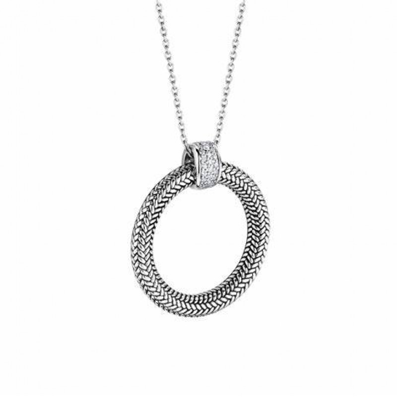 girocollo argento 925 con pendente rotondo e zirconi