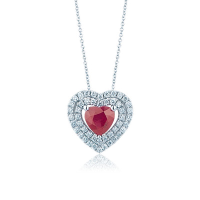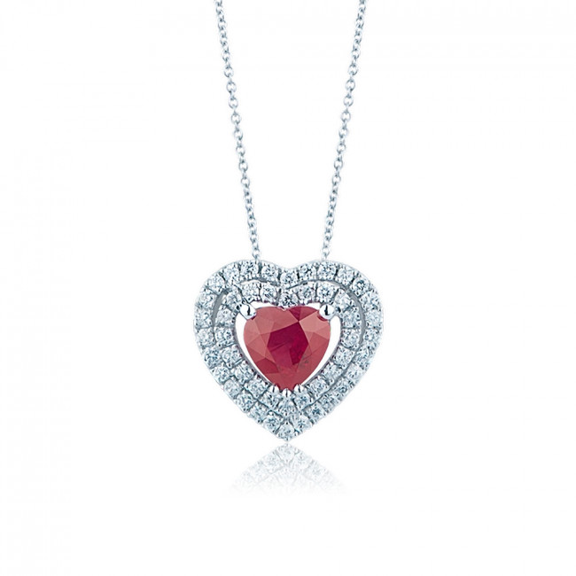 girocollo in oro bianco 18 kt. diamanti g color vs purezza per un totale di ct. 0.13 e rubino birmano taglio cuore ct. 0,54