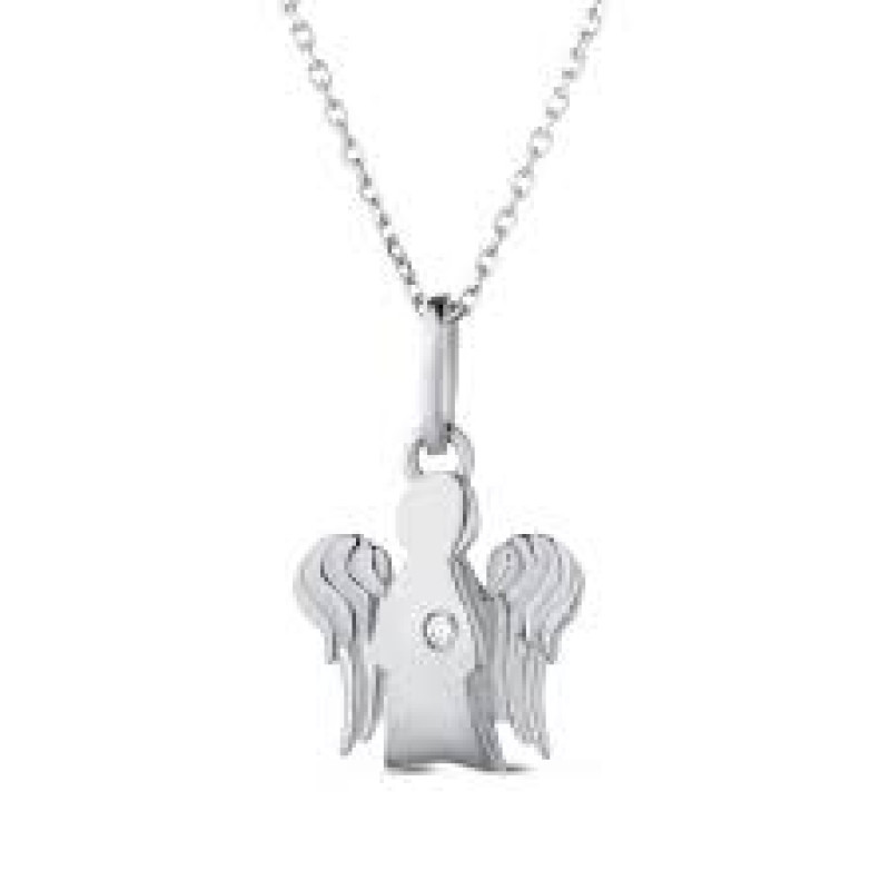 gioiello da donna roberto giannotti della collezione celebration realizzato in oro bianco 375 (9kt) - la collana, caratterizzata da una maglia a catena modello rolò, è valorizzata da un angelo pendente impreziosito da un luminoso diamante taglio brillante di 0,0065 ct - dimensione angelo: base 1,10 cm - altezza: 1,20 cm - chiusura con anelletto a molla - lunghezza regolabile da 40 o 45 cm