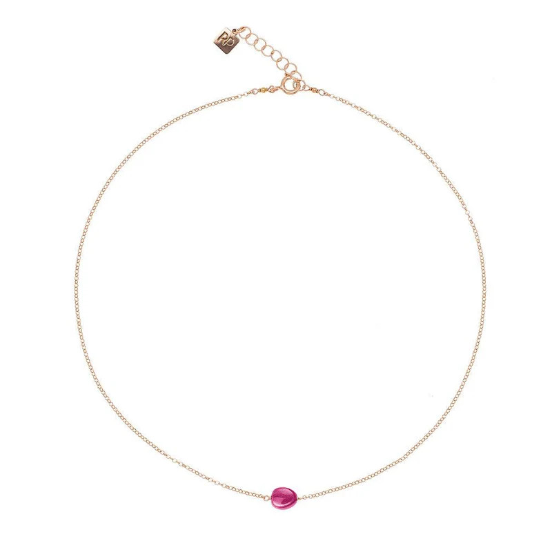 girocollo in argento 925 placcato oro rosa, impreziosito da una piccola pietra in legno laccata e smaltata a mano colore rodocrosite. misure girocollo: 37 cm allungabili a 40 cm