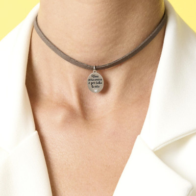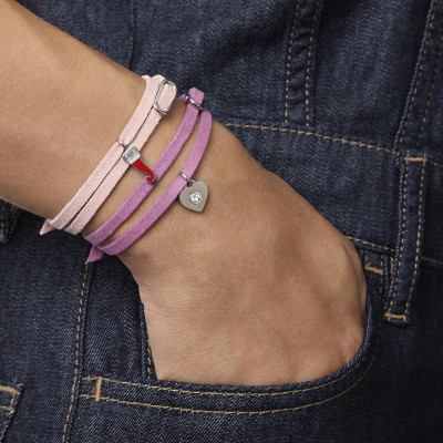 choker-bracciale donna componibile in microfibra finitura camoscio rosa con fibbia in acciaio. posiziona il tuo charm al centro del master e regola la sua misura a seconda che tu voglia usarlo come choker o come bracciale.