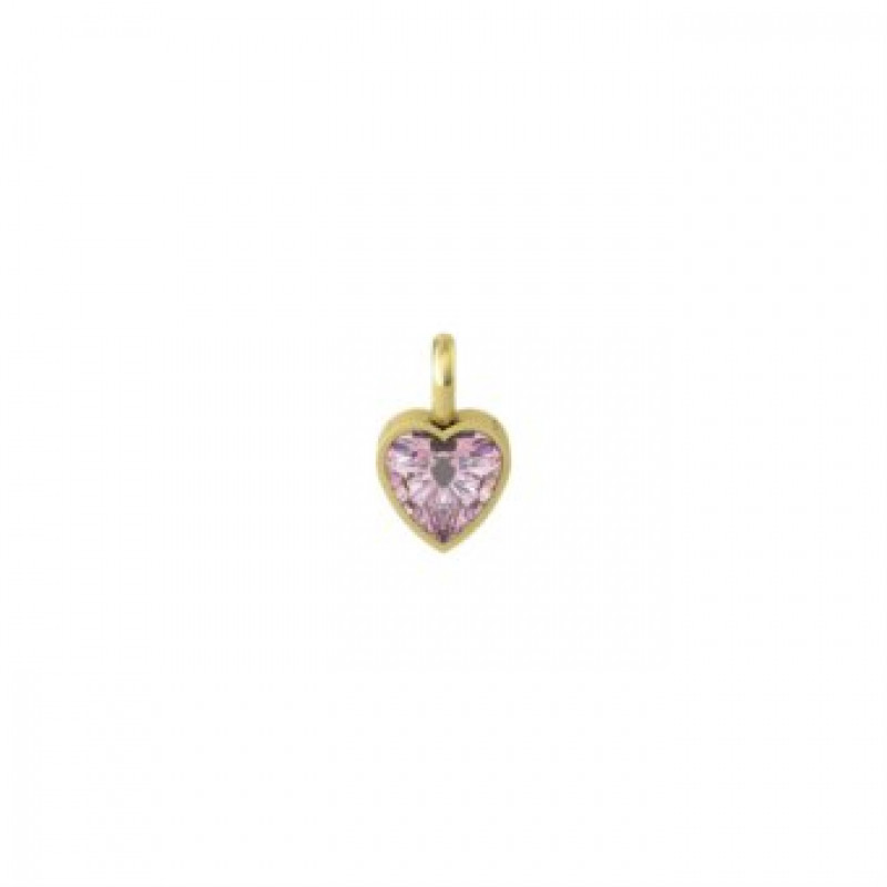 charm donna kidult della collezione energy stone realizzato in acciaio color oro giallo a forma di cuore e zircone rosa taglio cuore.