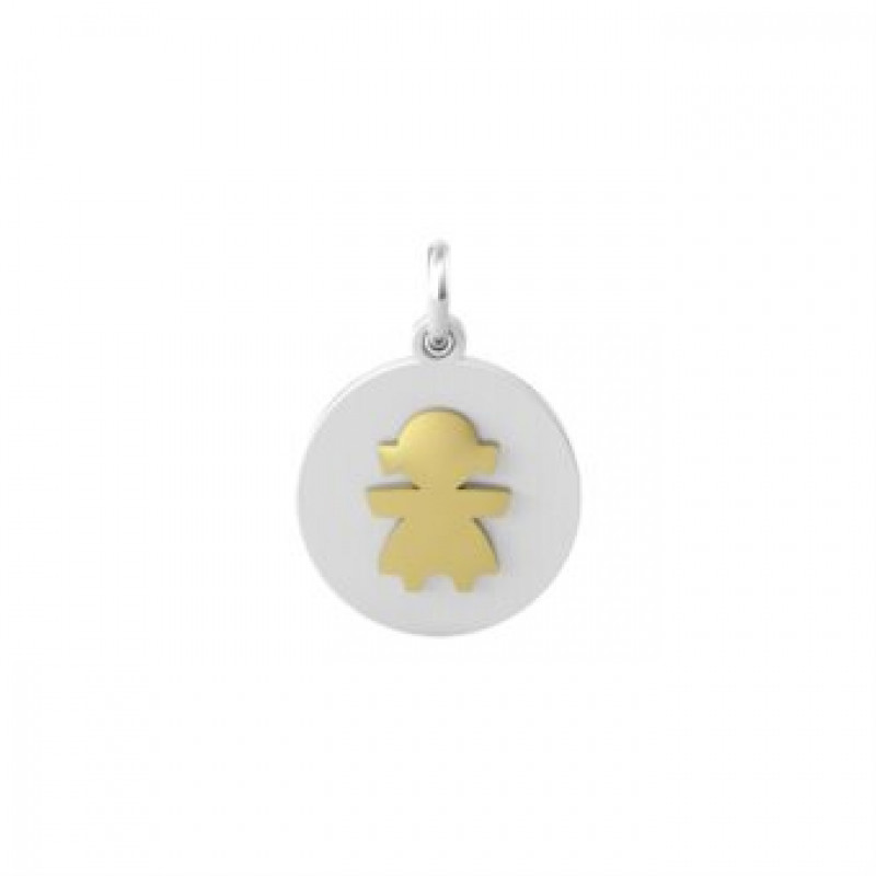 charm donna kidult della collezione moments tondo realizzato in acciaio satinato con elemento a forma di bambina color oro giallo lucido.